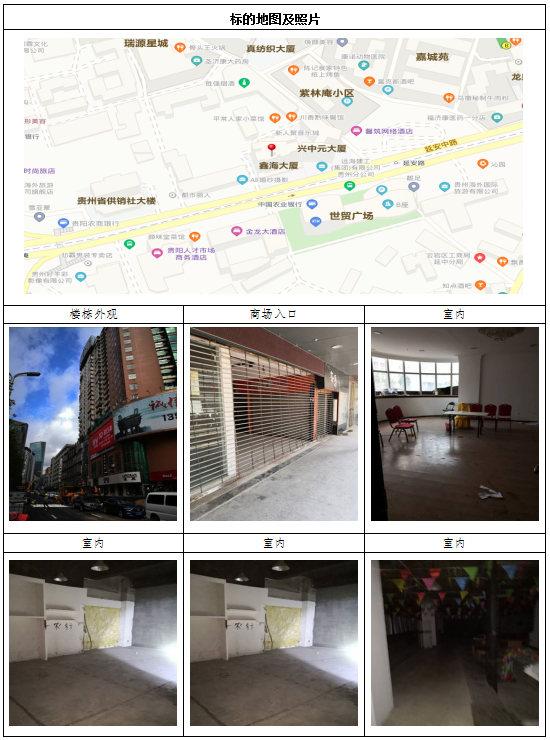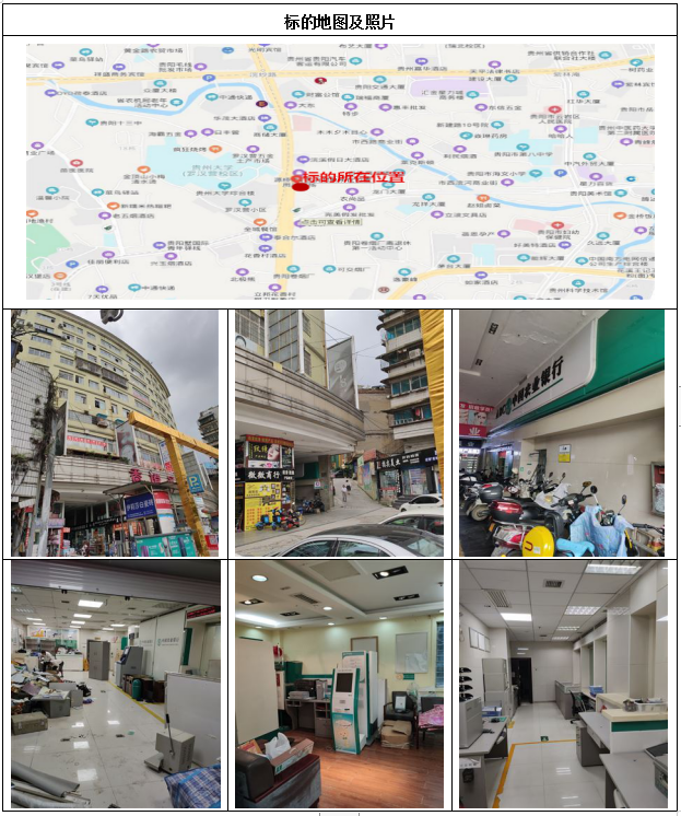 標(biāo)的位于貴陽市云巖區(qū)香獅路198、196號新里程商城1號樓F1層203號;該標(biāo)的分?jǐn)偼恋厥褂脵?quán)面積:98.51㎡ ,總建筑面積:285.72㎡,樓宇總層數(shù):9層,所在樓層:1層,地類用途:商業(yè)用地;土地使用權(quán)類型為出讓,土地使用權(quán)終止日期為:2053年10月23日,土地所有權(quán)為國家所有;建筑結(jié)構(gòu):混合結(jié)構(gòu);層高:3.3米,建筑用途為商住。