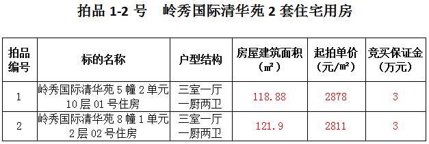 1、關嶺縣嶺秀國際2套住宅房產(chǎn),建筑面積:118.88—121.9㎡,起拍價:2811—2878元/㎡;