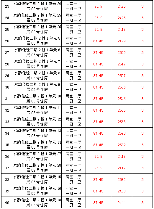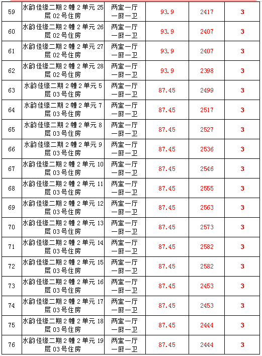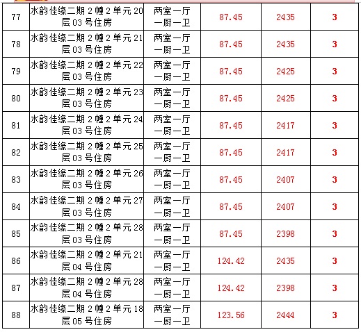 2、水韻佳緣82套住宅房產(chǎn),建筑面積:87.45—128.24㎡,起拍價:2373—2582元/㎡;