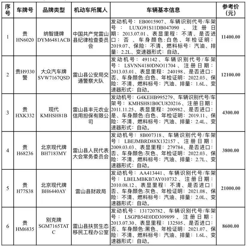 受雷山縣財政局委托,我公司于 2021 年09月15日(星期三)下午 14:30 時在雷山縣紅楓水岸4樓財政局會議室公開拍賣下列標(biāo)的物: