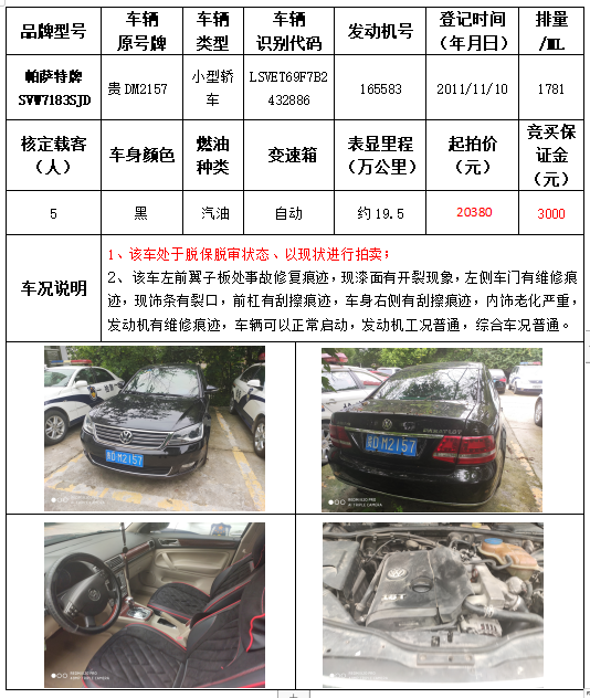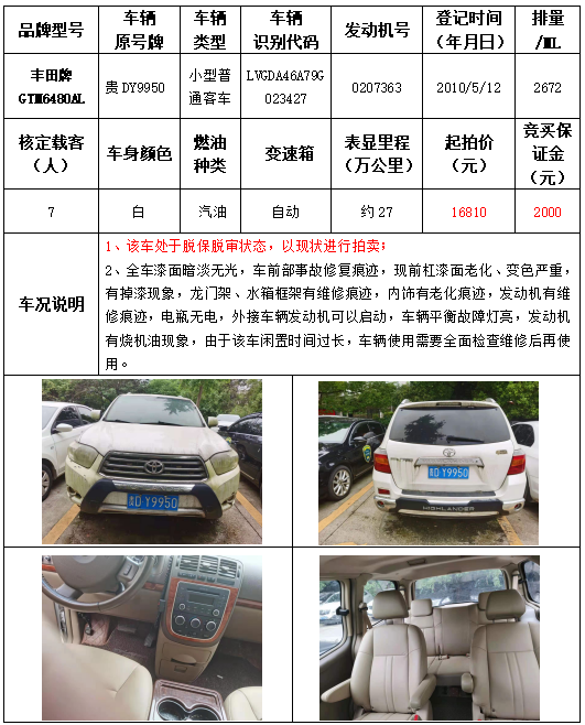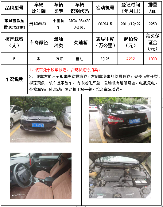 受委托,本公司定于2021年9月16日(星期四)下午14:30時,在銅仁市碧江區(qū)川硐教育園區(qū)誠信路銅仁市公共資源交易中心開標(biāo)六室(拍賣大廳)公開拍賣以下車輛: