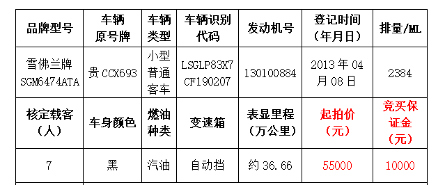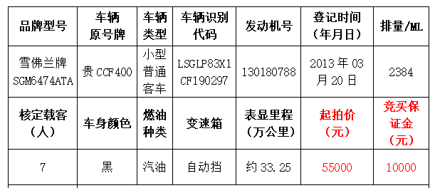 拍品編號(hào)1:雪佛蘭牌SGM6474ATA小型普通客車一輛