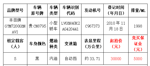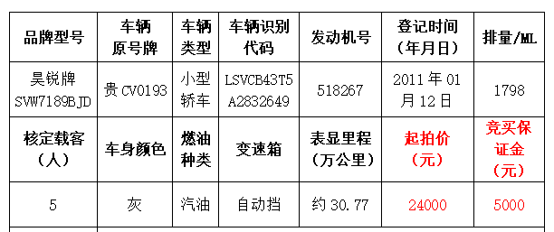 中國(guó)農(nóng)業(yè)銀行股份有限公司遵義分行車輛拍賣(mài)
