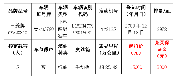 拍品編號(hào)5:三菱牌CFA2031G小型越野客車一輛