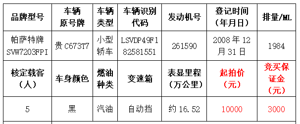 本次拍賣(mài)會(huì)的拍品編號(hào)6:帕薩特牌SVW7203FPI小型轎車原機(jī)動(dòng)車登記證書(shū)遺失,拍賣(mài)成功后委托方將協(xié)助買(mǎi)受人補(bǔ)辦遺失證件完成過(guò)戶手續(xù)。