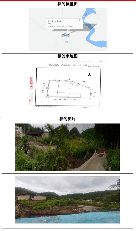 該標(biāo)的位于余慶縣敖溪鎮(zhèn)柏林村村委會(huì)旁,標(biāo)的上無(wú)建筑,該標(biāo)的以圍墻為界,標(biāo)的位置在村寨邊緣,證載土地面積:約1326.3㎡,土地使用權(quán)性質(zhì):劃拔,土地證載用途:煙葉收購(gòu),土地證號(hào):余國(guó)用(2007)第897號(hào)。