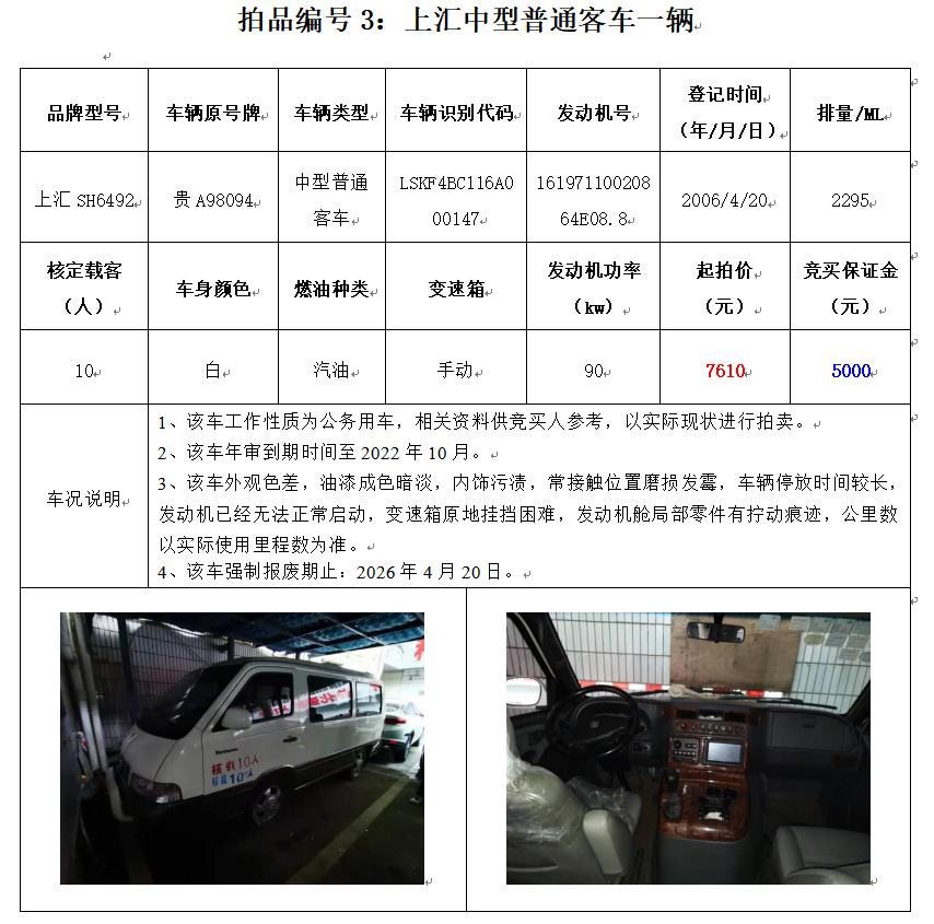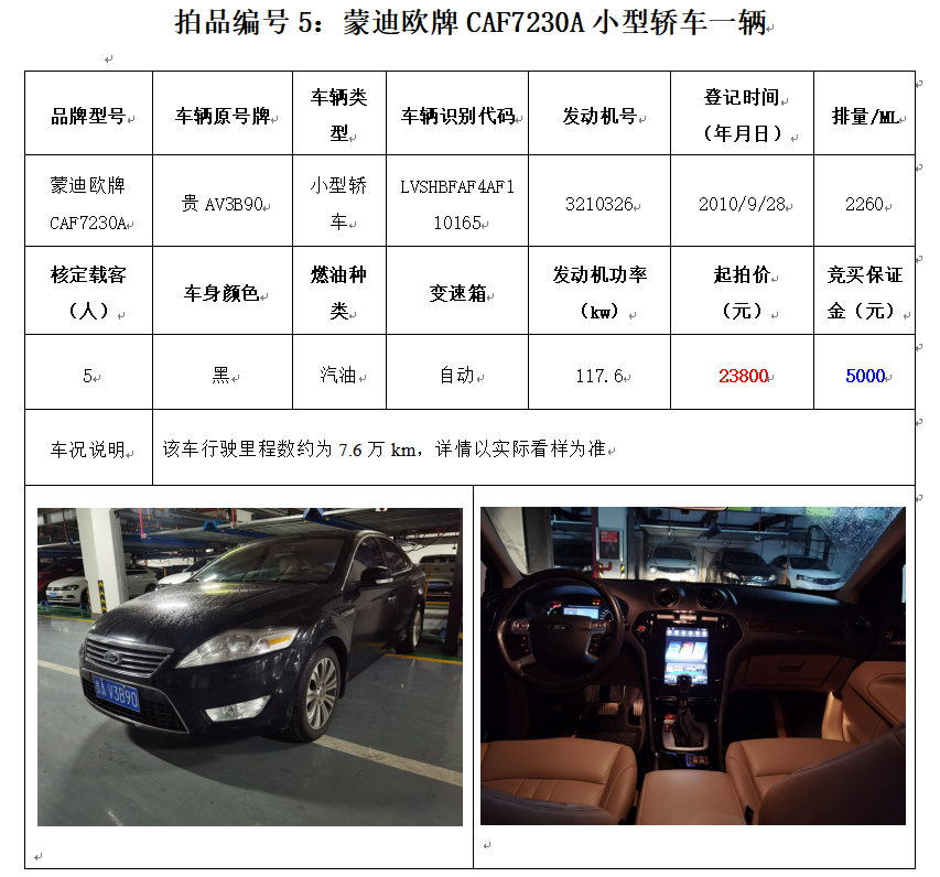 獵豹牌CFA6501AA小型普通客車1輛、江淮牌HFC6470A4R3BE3小型普通客車1輛、上匯SH6492中型普通客車1輛,別克牌SGM6529ATA小型普通客車1輛,蒙迪歐牌CAF7230A小型轎車1輛,共計(jì)5輛。
