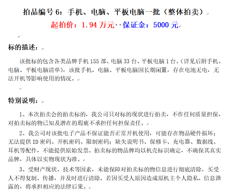 手機(jī)、電腦、平板電腦等電子產(chǎn)品一批(整體拍賣)