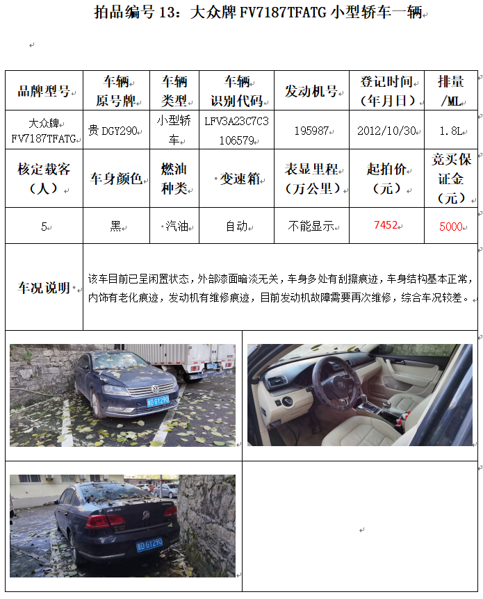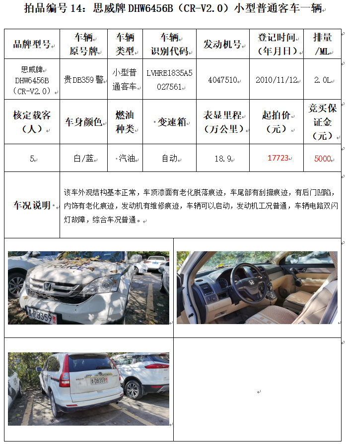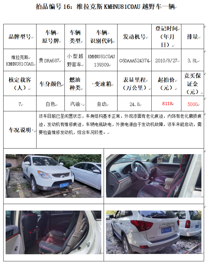 受委托,本公司定于2021年12月10日(星期五)下午14:00時,在銅仁市碧江區(qū)川硐教育園區(qū)誠信路銅仁市公共資源交易中心開標(biāo)六室(拍賣大廳)公開拍賣以下車輛: