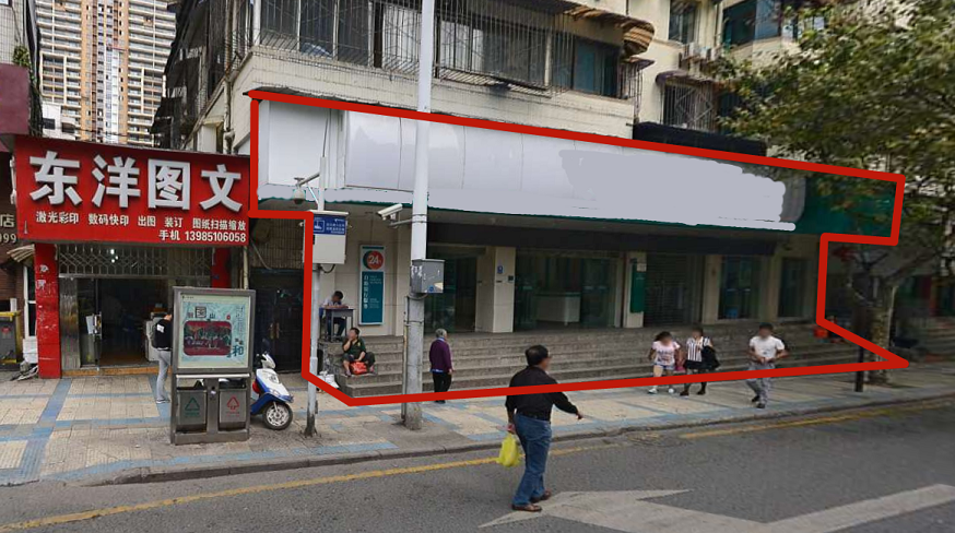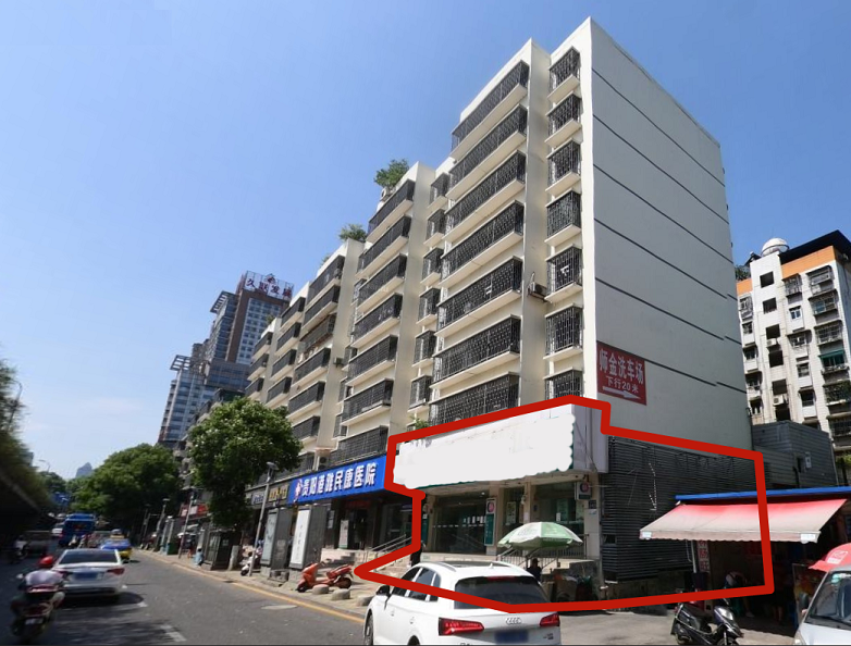 門(mén)面臨寶山北路,臨街面寬13.2米,目前空置,位于相寶山酒店用品批發(fā)市場(chǎng)大門(mén)右側(cè),與貴州日?qǐng)?bào)社隔街相望。