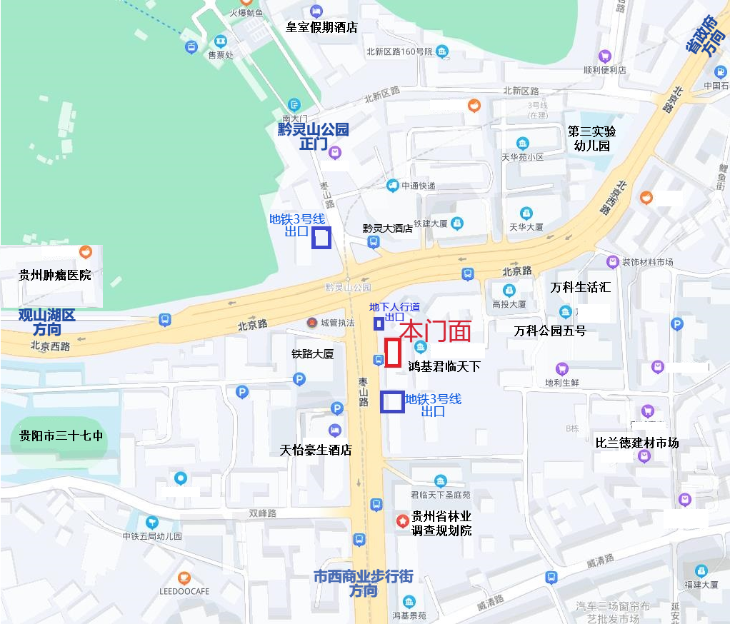 一、黔靈山公園正門(mén)地鐵口(天怡豪生酒店對(duì)面)臨街商業(yè)用房