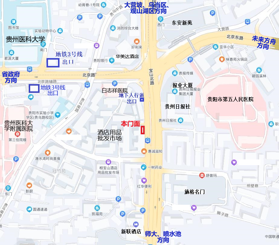 該標(biāo)的附近有貴陽(yáng)市最大醫(yī)院貴州醫(yī)科大學(xué)附屬醫(yī)院,貴陽(yáng)市第五人民醫(yī)院、白志祥骨科醫(yī)院,有華美達(dá)神奇大酒店、新聯(lián)酒店等高端酒店,貴陽(yáng)市實(shí)驗(yàn)小學(xué)貴烏路校區(qū),各銀行網(wǎng)點(diǎn)、農(nóng)貿(mào)市場(chǎng)等配套設(shè)施齊全,標(biāo)的門(mén)口即為公交站臺(tái)(貴州日?qǐng)?bào)社站),10路、12路、17路、26路、28路、229路、253路、36路、302路、4路、40路、42路、58路、61路、69路、75路、9路、K2路、79路、262路、323路等多條公交線路可到達(dá),距即將開(kāi)通的地鐵三號(hào)線貴醫(yī)站出口僅約300米。