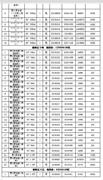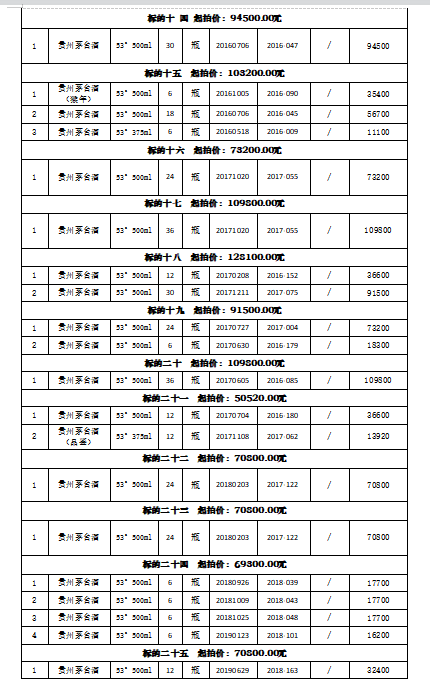 注:本場拍賣標(biāo)的經(jīng)過貴州茅臺酒股份有限公司鑒定為其公司生產(chǎn)。所有標(biāo)的按現(xiàn)狀進(jìn)行拍賣,競買人自行判斷。報名后持報名成功短信進(jìn)入展示現(xiàn)場看樣,看樣時需提前預(yù)約,配合工作人員安排。競價成功的買受人需公示期過后付款提貨。競買人需到現(xiàn)場查驗,如未到現(xiàn)場實地看樣的競買人,視為對本標(biāo)的實物現(xiàn)狀的確認(rèn),責(zé)任自負(fù)。成交后買受人需向拍賣人另行支付成交價2%的傭金。競買人應(yīng)于2022年1月13日下午13:20時前入場,遲到視為放棄此次競拍。