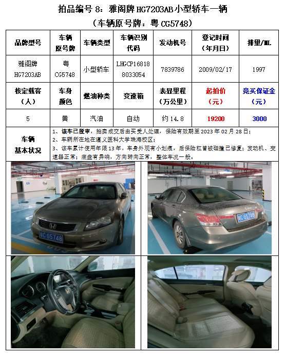 七、報(bào)名需交納競買保證金(車輛3000元、房產(chǎn)20萬元)資料服務(wù)費(fèi)300元/套(資料服務(wù)費(fèi)不退)。意向競買人應(yīng)在規(guī)定報(bào)名時間內(nèi)交納競買保證金、資料服務(wù)費(fèi)到我公司指定銀行賬戶,取得意向競買資格。