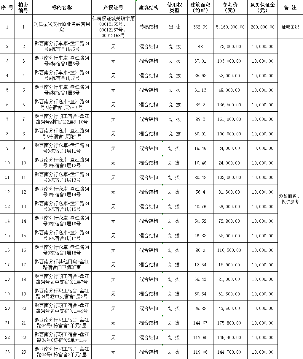 黔西南州天鼎拍賣(mài)有限公司于2022年4月21日下午14:30在貴州省黔西南州興義市瑞金南路45號(hào)(中國(guó)農(nóng)業(yè)銀行黔西南分行科技樓四樓會(huì)議室),對(duì)中國(guó)農(nóng)業(yè)銀行股份有限公司黔西南分行一批房產(chǎn)進(jìn)行拍賣(mài)。
