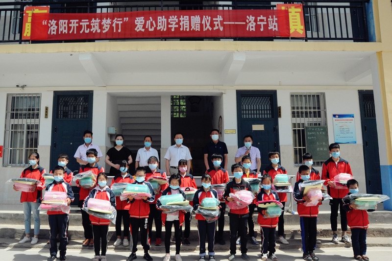2020年5月27-29日,“洛陽開元筑夢(mèng)行”愛心捐助活動(dòng)分別在欒川秋扒鄉(xiāng)中心小學(xué)、洛寧故縣中心學(xué)校、宜陽蓮莊鎮(zhèn)政府舉行,共資助了61名貧困學(xué)生,累計(jì)捐款捐物近4萬元;